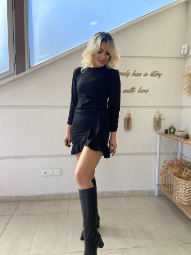 • Kadın uzun kollu bisiklet yaka önden volanlı ithal krep elbise
